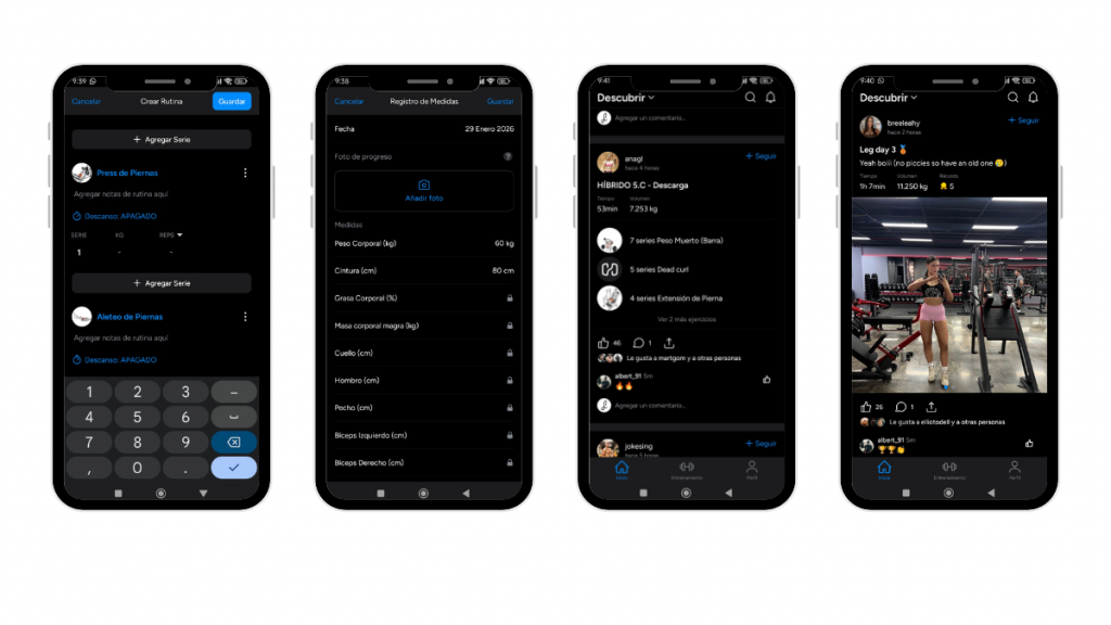Hevy cuenta con una interfaz muy práctica e intuitiva. Su uso es súper sencillo y eso hace que tenga tantos suscriptores. Hevy ha ganado terreno a gigantes como Strong porque su interfaz es limpia y rápida. Si eres una persona que no suele hacer deporte y quiere ponerse las pilas, esta app te ayuda a empezar. Registrar tus entrenos y rutinas es tan fácil como hacer clic.